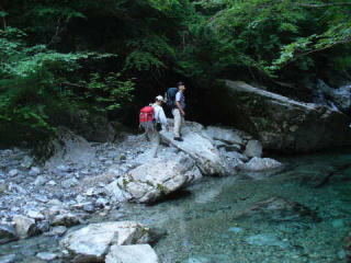 | 二日目 今日も晴天です 河原小屋五時起床して、朝食、準備して狼平に向かう |