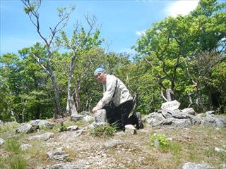 | 国見岳で二人を待つ 無線が入り国見が良く見えると言う 手を振れと言うが足を振ると言い返すが、青葉で見通しが無い ![]() |