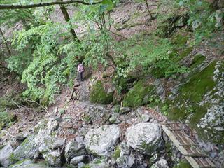 ユックリと下る 途中で今までになかった梯子が出た 小さな書き物に薊岳にはコースが難しいと書いてあったが 同行者は一度ここから登ってみたいとチャレンジ意欲が出ていた。 私も、帰ってコースを読図すれば、急傾斜だが未踏の尾根 マタマタ登る機会を作ってみたい 安全第一でゆっくりと回れば、色々なものが見える山だった |