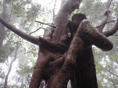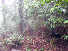 | 向瀬山頂に小さく黄色のテープがあった この方は湯ノ又の林道から年中岳を目指したようだ。登ろうと思った尾根先に一巻き同じ黄色のテープが巻かれていた コノ尾根の130mばかしの登りが急登で、フウフウ、霧雨が馬酔木を濡らしそれが私を濡らす 風が吹けば少し寒いが、汗は出る 年中岳は見晴しもなく、植林の片隅のピーク、好き者達が山名版を揚げている。 よく見かける好き者達だ ![]() |