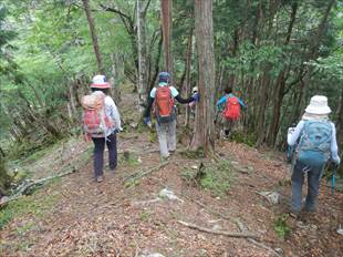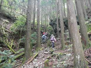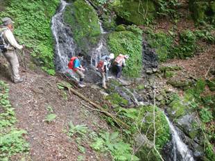 | 五番関に向かって下山する なかなかワイルドな道で油断は禁物だ ただ、階段跡の鉄筋が飛び出しているところが多い 足をかければ大怪我ですまないだろう。今日も一人が足に掛けあわや転倒だった 不必要なら引き抜いてもらいたい ![]() ![]() 見晴らしを楽しみ、山座の同定も楽しく五番関に下る 五番関からトンネル口までも油断はできない しショウタンは最後部をゆっくりと下山した ![]() |