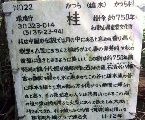 | 竜門山には尾根を越えてゆくが、林道を進み写真の道標から分岐した林道へと下ってゆく 整備がない林道はブッシュ化が進んでいる 確かに分岐があったはずと注意して歩く。初めてだと上手く探せないかも ![]() 分岐を掴めば、時々道標が出る。信じて林道を進もう 谷から現在地を推測したが、地図に載る道だかどうか判断がつきにくく、GPSで確認したが、以前の古道跡に沿っているようだ 所が、進めば進むほどブッシュがひどく、手で雑木を広げながら進む 好き物なら行くだろうが、マア通常ハイカーなら、即リタイアか 足下も水溜りなどがありぬかるんでいた 途中で古道を見つけ林道から登ってみた。テープも巻かれていたが、10mで林道だ。 下には道標があった。 ますます激しいブッシュ、モウ何処だか、エーイ行っちゃえ 正面に雌桂が出た。やれやれ、ここで林道が終わっていた ![]() 以前来たときに枝が又裂きのように折れていたが、流石天然記念物、750年の命を永らえた木だ 樹木医が来たのだろう、手が加えられて、その痛々しい姿を整えていた ここからは古道が残っていた↓ ![]() ![]() 一つ向こうの谷に雄桂がでた 木についての説明板は今も残っていた ![]() |