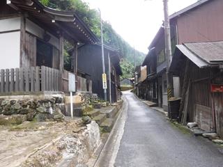 | 道下を覗けば薄い踏み跡があり尾根上を下れば道跡が出る 傷みかけ小枝が落ちた道だが時には人が通るようだ くねくねと下れば、古道の証、地蔵が出て行き先を書いている。明らかに天川村からくる方のものだ 字が読みづらい 水でぬらせば字が浮かび上がるが、崩し文字は読みにくく、左、かわど は読み取れたが右は読めない 各地図で現在集落に似た名が無いか調べたがなかった 延享二年秋月信如とあり1742年277年前のものだ目標のかわどに下る。すぐ下の鉄塔からは見晴らしがある 道なりに下った 一旦県道に出て読図から尾根を覗くと道跡が出て再度古道に入るが、古道は分かれるが広いほうが正当だろうと下った 結果どちらも同じで、また県道に出る 其の県道出口に朽ちた道標が有ったが、字が完全に消えていた 県道を下れば朽ちた建物が出る ここが松ヶ茶屋跡だ。お墓もあり行者堂跡の碑もある。墓裏には靡きが書かれている 松ヶ茶屋跡裏下に古道が走っていたがもう県道を下った くねくね、思ったより長い 舗装路はそう感じるものだろう |