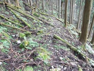 | コースは黒滝村の商工会館に車を置かせていただきスタートだ ここは近隣の職場の方たちも駐車しているようで平日なら満車の時があるようです 8時ごろまでに着けばと感じた ![]() 信号を南に歩けば川戸の村中は古い参道の匂いがする 地蔵堂や古い役場跡、河分神社と見どころが有り、黒滝川を渡ればすぐに片透、扇形山の案内が擁壁にある 道なりに歩けば道は終わりポストが付けられたフェンスが出る そこから小道に登り墓地が出て案内に従うが、この奥にあった民家は廃屋です 道なりにクネット、コンクリ舗装路を終点まで登れば写真の民家が出る この民家出てしまえば、分岐を通り過ごしたことになる ![]() 100mほど下に畦道がありそこを奥に入れば下の民家前に出る 下の民家は舗装路から見えないが森林テープが見えるだろう 分岐には、立派な道標があるが今回も羊歯に隠れて見えず分岐に自信がなく一応記憶にある上の家を確認に登った 分岐は下の写真の感じで入る 写真の民家が出ればコースはOKだ ![]() 分岐に道標を立て直したが、いつまで立っているかわからない ![]() |