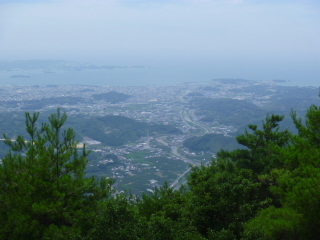 | 目的尾根は歩きよい、県木に指定された、ウバメガシが生える 370mピークの上に大きな岩稜が二個、どちらの上にも登ったが見晴しは最高だ 三星山 厳しい山だ、岩稜が多い |