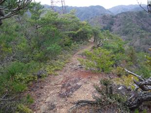 | 下山は難しいと慎重に登った位置を確認した ふと、足元を見れば木杭が打たれ土止めが板だ 考えれば、ここが道跡だったのだろう 小さな尾根に入ればいいがとコンパスを合わせ方向を取ってからGPS確認をした 自己満足だ 少しは歩きよくなったが、シザも多いが小シダもウラジロ羊歯 両方が勢力を争っている。小羊歯は歩きよい 火事後の木が焦げたものが出た。ペットボトルやビール缶などが出る。秋の山かもしれない ![]() 何処に尾根が出ているかほとんど分からない 羊歯の隙間を歩き尾根芯を探り下る ここだろうと下れば竹藪跡、これは間違ったとジックリ地図を眺めるが、メガネが曇り??、東に下れば金熊寺に出ると、竹藪の谷を下り30mも登れば尾根だ。 尾根に登り切って斜面を下る場所を目視していると、折れた木に黄色のテープが巻かれていた 下を見れば、掘れ込んだ道跡が見え偶然に金熊寺神社の下り口が見つかった ![]() 神社の森は常緑樹が多い 見事なウラジロガシが見えその下に工事中の神社が見えた ![]() 下山口を振り返る。土に切り込み階段を作っていてペンキが吹きかけられたような跡が有った古い神社らしくオガタマノキの府天然記念木と、ご神木のナギの木の天然記念物がすごい ![]() ナギの木↑ オガタマノキ↑ ![]() ![]() |