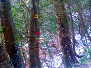 沢山テープが打たれた場所と判断して下ると、踏み後やテープが打たれていた